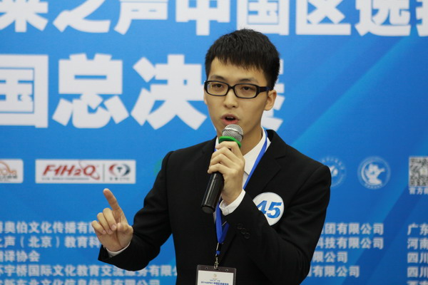 2014“APEC未来之声”中国区选拔活动由中国国际贸易促进委员会主办,中国国际贸易促进委员会国际联络部和中国贸易报社承办,此次大赛已是第七届。经过初赛、复赛,共有来自全国14个赛区的88名选手入围全国总决赛。除英文演讲、自圆其说、团队辩论等环节外,今年大赛特别增设了“模拟APEC(英文)”环节。