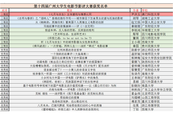 对比参赛作品的质量和选手层次,可以看出学生在不同阶段对电影的喜爱程度和解析能力参差不一,但也有打破学龄和年级限制的“专业黑马”,如本次二等奖获得者胡琴就是2017级戏影专业的学生,在众多大学生影评作品的独特视角与精妙解析中冲出重围,获取优异成绩!这也激励了更多学生要为电影更努力学习和思考。