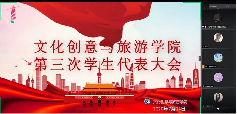 7月14日下午,文化创意与旅游学院第三次学生代表大会于腾讯会议顺利召开。学院党总支书记柳国斌、团委书记刘鸿华、辅导员刘凤娇及学院111名学生代表参加会议。
