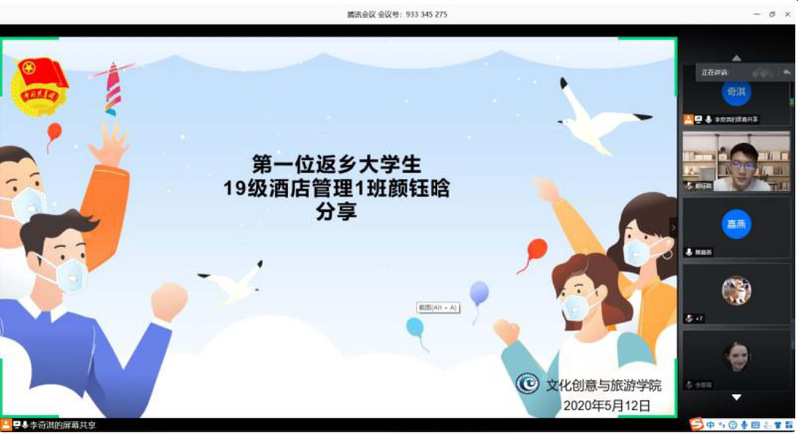 为深入学习贯彻落实习近平总书记五四寄语精神,持续做好疫情期间防疫宣传,团结引领广大团员青年在常态化疫情防控中继续担当进取,文化创意与旅游学院青马工程之“学习寄语精神,展现青春担当——文创返乡大学生志愿活动分享” 5月12日晚于云端顺利举行,学院100余名团员青年参加了活动。