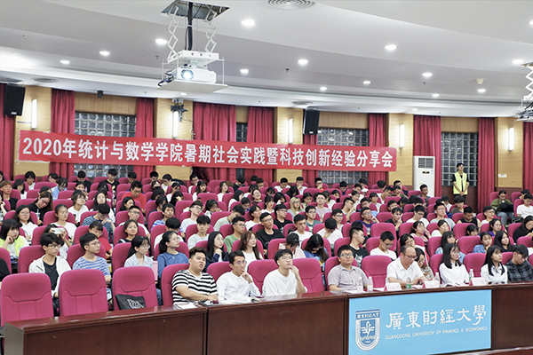 2020年10月13日晚,2020年统计与数学学院暑期社会实践暨科技创新经验分享会在三水校区图书馆报告厅举行。学院党委副书记李恩华老师、20级辅导员王宗赫老师、19级辅导员文闻老师、团队优秀代表、团学干部、2019级学生代表、2020级学生代表参加了此次会议。王宗赫向全体学生介绍学院学生团队建设的基本情况。王宗赫从学生团队建设的流程、目的、优势入手,详细介绍了学生团队建设的全过程。王宗赫强调,学院团队建设是学院培育学生创新创业项目的重要平台,也是校内外各类创新创业竞赛及立项活动的唯一对接机制,并且拥有充足的活动经费、优秀的指导老师和成熟的培养机制,鼓励全体学生积极参与到学生团队建设中来。