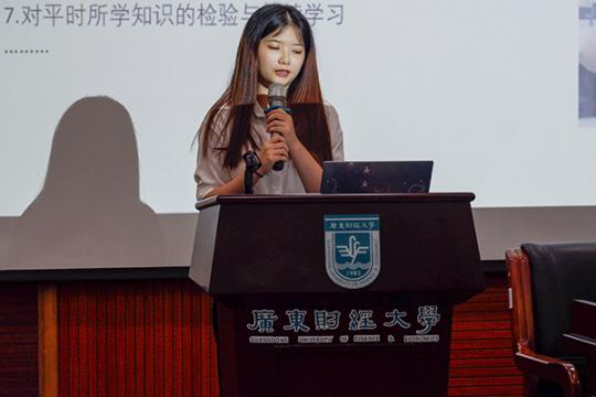 来自2018级的三个优秀团队派代表向同学们分享了团队建设的经验。“披荆斩棘”团队的陈丽、冯聪笼、叶漪玲分享了他们团队调研的全过程,着重介绍了调研时间轴、调研安排、应对措施与建议及总结成果和经验。“益行队”队长郑浩伟分享了他们团队对于“三下乡”活动的理解、投入以及倾情参与,使大家充分感受到学院学子的良好精神面貌。“统数绿色社会实践队”队长刘嘉娴细致地介绍了他们团队的活动经验,从“我们为什么要做团队项目?”的角度出发,向学生们分享了包括项目选题、团队建设、实施调研、项目申报、项目推进、成果提升等方面的经验,并鼓励低年级的同学在做团队项目的过程中,要坚持到底,迎难而上,这样才会有所收获。