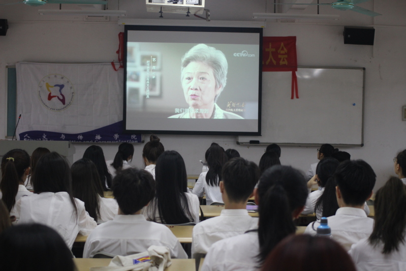 首先,同学们观看了纪念抗美援朝战争70周年大会的视频。习近平总书记发表讲话,他指出,伟大的抗美援朝战争,是保卫和平、反抗侵略的正义之战,抗美援朝战争的伟大胜利,是维护世界和平与人类进步事业的伟大胜利。70年前,志愿军雄赳赳气昂昂,跨过鸭绿江。经过两年多的浴血奋战,抗美援朝战争取得了重大胜利。70年间,伟大的抗美援朝精神激励着中华民族不断前进,通过重温抗美援朝历史,缅怀为国捐躯的革命烈士,全校师生增强了爱国主义情感和民族自豪感。在今后的工作和生活中,要时刻铭记历史,铭记革命先辈的伟大精神,弘扬中国人民志愿军的优良传统,把爱国热情转化为学习动力,健康成长,争做新时代新人 接下来团委副书记余静远发表主题讲话。她告诉同学们抗美援朝的硝烟虽然已经远去,但是人类的战争从未停歇,台湾问题还没有解决,中华民族统一之战的号角随时吹响,今天我们纪念抗美援朝,缅怀革命先烈的丰功伟绩,是为了学习共产党人敢于斗争、不怕牺牲、艰苦奋斗、不断前进的精神风范,也激励我们坚定共产主义理想和为人民服务的信念,增强政治责任感和历史使命感切实当好新时代党的助手和后备军,深刻认识自己肩负的历史使命,自觉把为党和人民事业而奋斗作为衡量自身先进与优秀的基本标准,努力在实现国家富强、民族振兴、人民幸福的历史进程中实现个人价值,始终走在时代前列,引领风气之先,在实践中成长为担当民族复兴大任的时代新人。