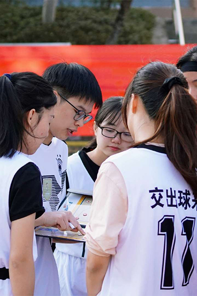 比赛前,实验区进行赛前鼓劲,女篮队员们交叠双手,整齐一致喊出实验区“青春”的口号,彰显实验区青春运动,活力无限的精神。