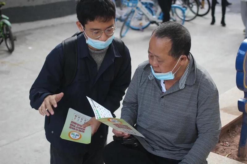一位同学在向居民介绍垃圾分类知识