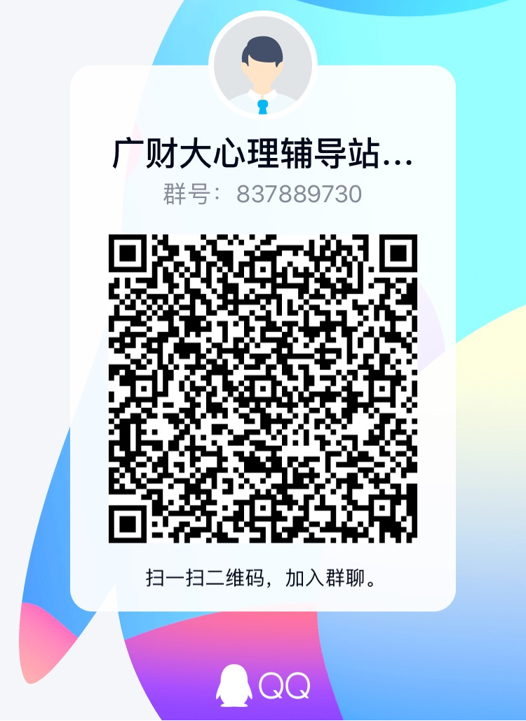 请各学院于2021年10月8日前将本学院心理辅导站工作人员汇总表纸质版(加盖学院公章)报送门诊部心理咨询中心(旧图书馆102室),电子版发送至59916556@qq.com。并请各学院心理辅导站站长及副站长加入“广财大心理辅导站”QQ群”。