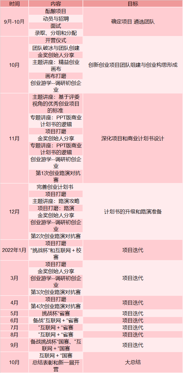 根据创业竞赛的要求,按照“输出倒逼输入”的方法设置以下内容: