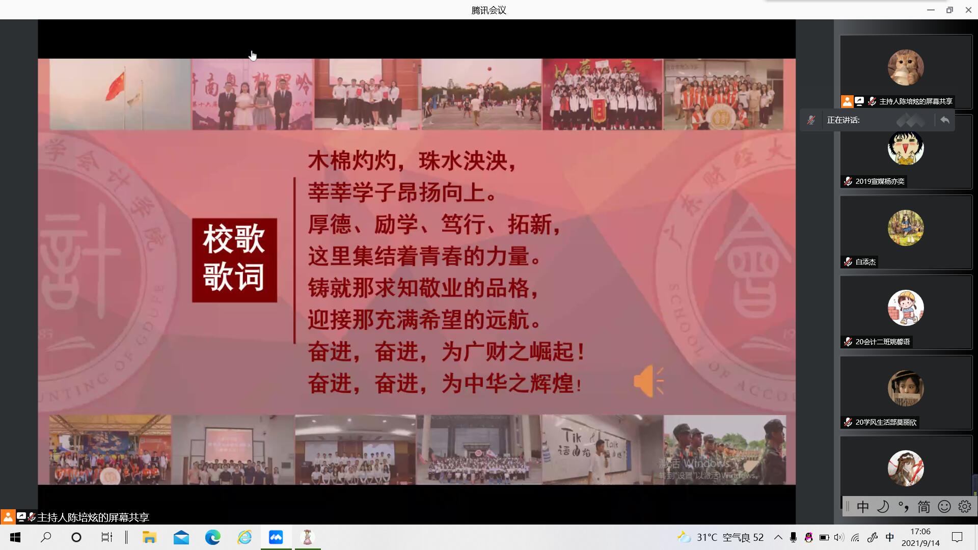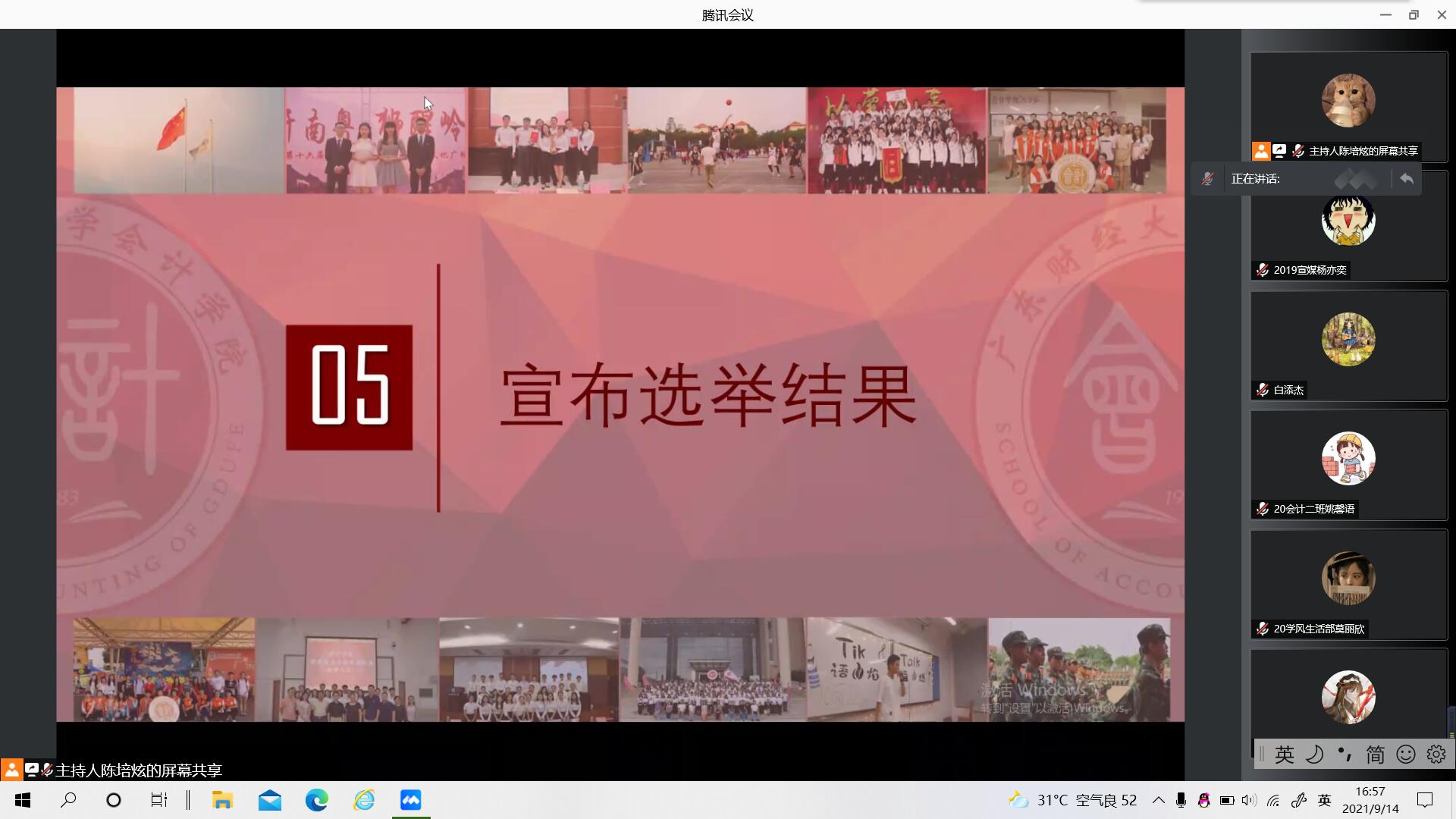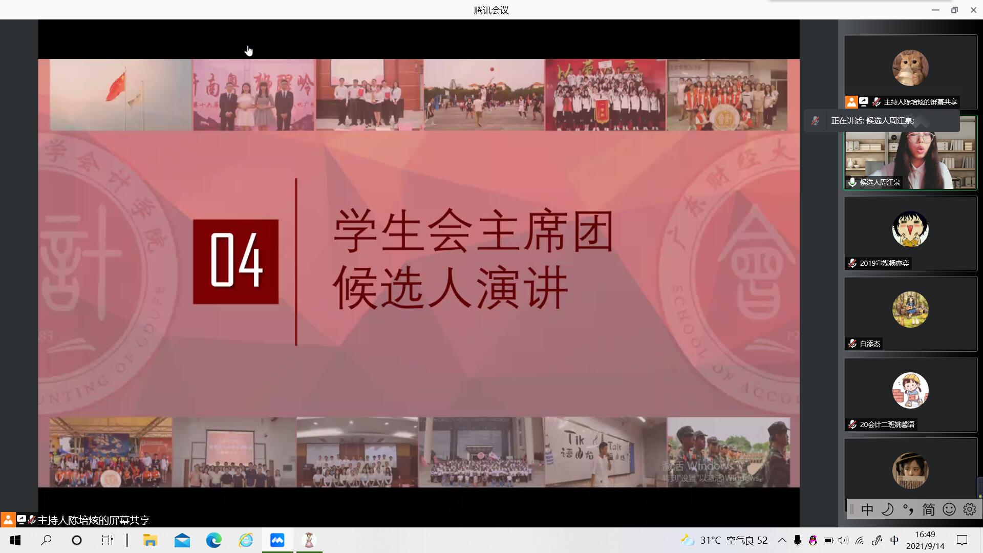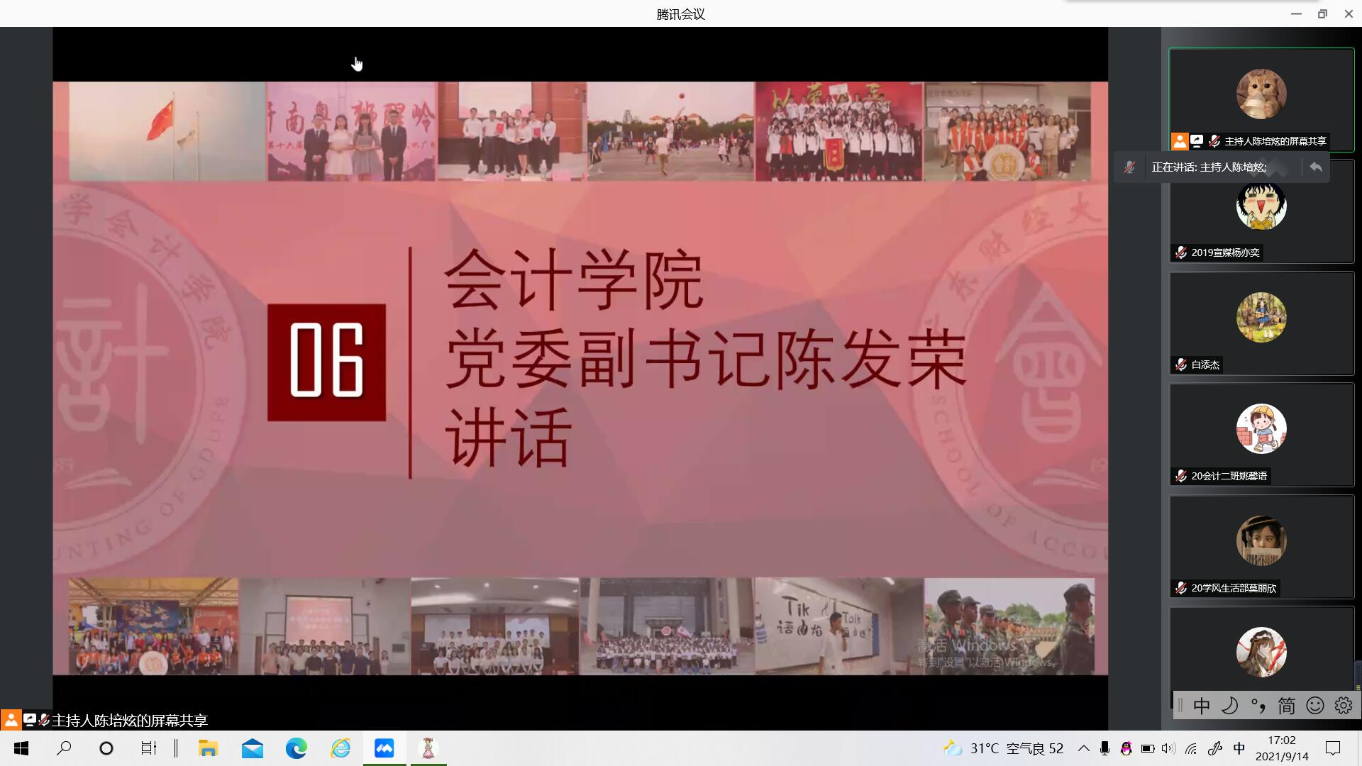 2021年9月14日下午16:30,m88会计学院第八次学生代表大会如期在线上举行。此次大会参会的领导老师有:会计学院党委副书记陈发荣老师、会计学院团委书记涂荣珍老师。除此之外,全院共有148名学生代表参与。
