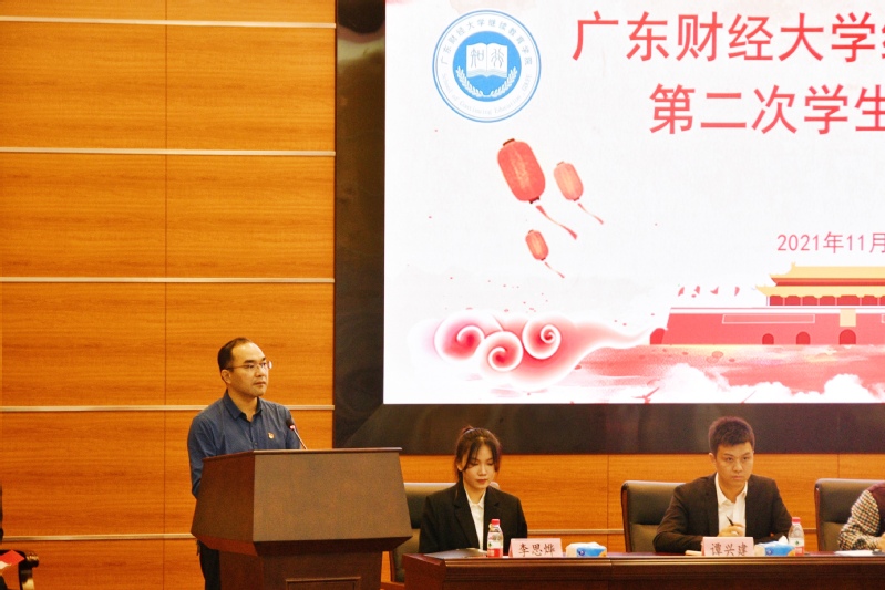 11月24日晚,继续教育学院第二次学生代表大会在第一综合楼408举行。校团委书记张鹏程、学院党总支书记龚义荣、学院相关老师和187名学生代表出席大会。