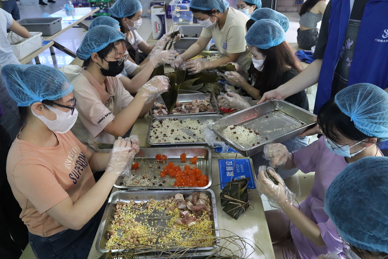 学校组织留校学生包粽子共庆端午