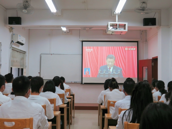 10月16日,校团委全体专职团干、学院团委书记代表、学生骨干代表在广州校区学生活动中心、佛山校区厚德楼104课室集中收听收看习近平总书记在中国共产党第二十次全国代表大会上的报告。