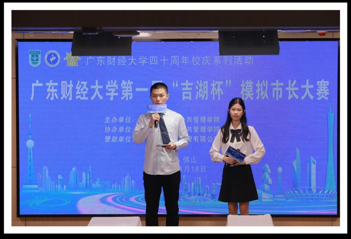 4月18日,m88第一届“吉湖杯”模拟市长大赛决赛在佛山校区同心楼101报告厅举行。经过赛前宣讲、校内初赛等环节,最终来自不同学院不同专业的10支队伍挺进决赛。