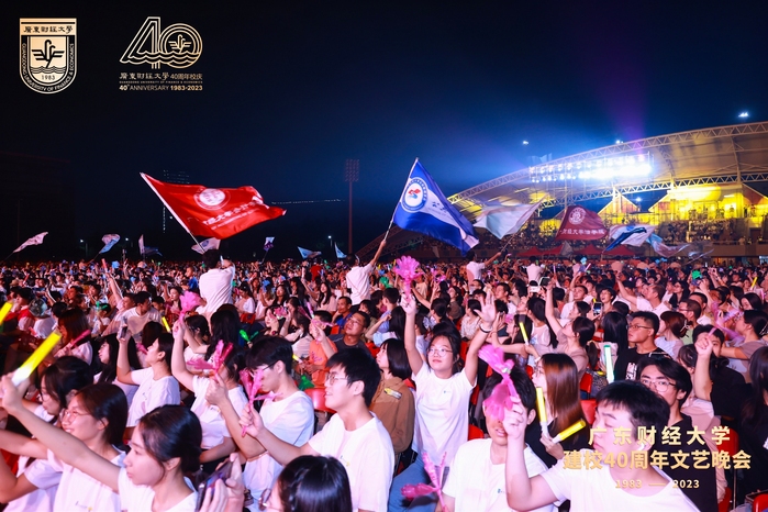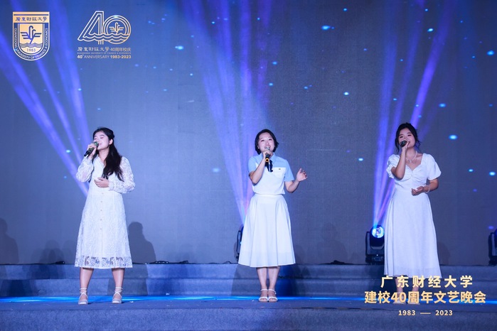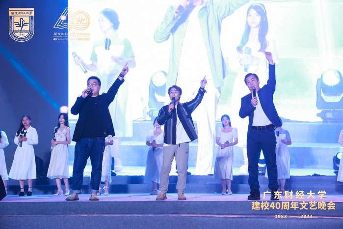 晚会的第四篇章为《扬帆远航》。 《领航》唱出了学校的一路耕耘,一路收获。学校党委坚持以习近平新时代中国特色社会主义思想为指导,持续加强党的全面领导以新时代一流党建引领学校高质量发展。 师生齐唱《为广财之崛起》 绕梁遏云。唱尽四十年砥砺奋进和步履铿锵,我们铭记着历代广财人默默奉献的伟业丰功,我们期待着新代广财人再次启航的无限可能。四十年来,广财人始终胸怀国之大者,将青春融入到党和人民的事业中。将汗水挥洒在每一个岗位上,《祖国不会忘记》那些勇往直前的攀登精神,人们不会忘记 那些无私奉献的辽阔胸怀。