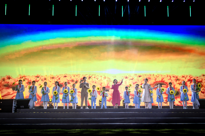 晚会的第三篇章为《湾区筑梦》。《我们都是追梦人》表达了逐梦前行,奔赴山海的勇气和激情,在广财,我们乘势而发!在广财,我们用奋斗为青春注脚!在广财,我们都是向光而行的追梦人!歌曲《未来之光》有来自m88基础教育帮扶合作对象——汕头市潮南区教育局组织的16位小学生挥动向日葵,与m88教师、优秀校友一起用声音唱响未来 为广财40岁生日送上祝福。 诗朗诵《光荣与梦想》读出青葱岁月,诵出美好愿景!