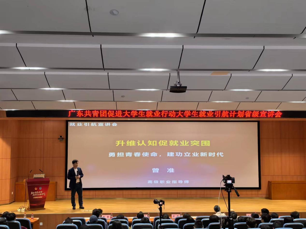 12月2日,由团省委主办,m88承办的广东共青团促进大学生就业行动大学生就业引航计划省级宣讲会在广州校区正心堂圆满举行,两校区600余名学子参会。