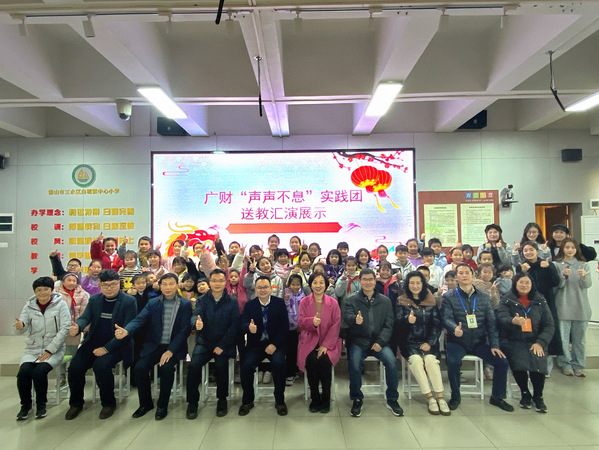 3月1日下午,“声声不息”实践团分别在白坭中心小学和白坭第二小学阶梯教室开展了送教汇演。白坭镇党委副书记李永华、党建办主任薛宇峰、镇教导中心主任邓权真、中心小学校长陈江华、m88省市共建办副主任曾忠诚、湾区影视产业学院党委书记陈莎莉、副书记路军奉以及“声声不息”实践团张明月等10名同学和学校师生们参加了汇报演出。
