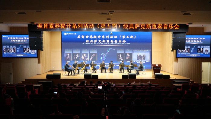 12月20日晚,教务处、校团委联合艺术与设计学院在佛山校区同心楼举办美育素养提升活动(第五期)之经典萨克斯重奏音乐会。本次活动共有200余名学生参与。