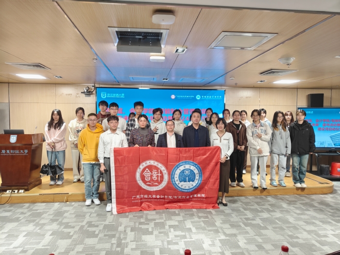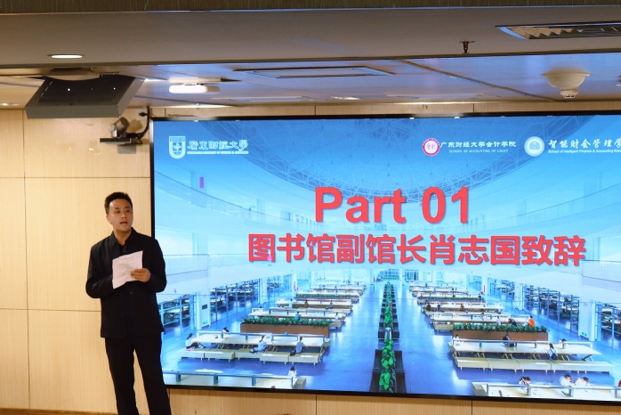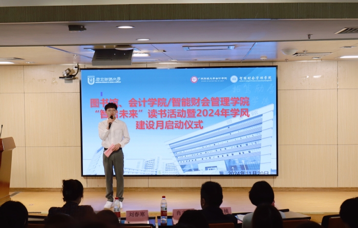 11月20日,会计学院/智能财会管理学院联合图书馆于佛山校区同心楼101开展“智启未来”读书活动暨2024年学风建设月启动仪式。图书馆副馆长肖志国、会计学院党委副书记刘春寒、图书馆学习中心部馆员莫映桃、会计学院辅导员张妮、欧定东,2024级财务管理学1班、2024级审计学4班学生参加活动。活动由欧定东主持。