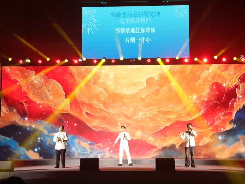 一首首流淌着时光密码的旋律诗篇,串联起青春记忆与未来期许。《敢爱敢做》的激昂旋律唤醒初见时的青涩记忆,社团面试的紧张、课堂发言的忐忑仿佛历历在目;《世界赠予我的》以温暖歌词诉说并肩同行的感动,让人心生暖流;《天地龙鳞》的豪迈歌声更将家国情怀融入青春誓言,激荡人心;马克思主义学院郝一峰以《贝加尔湖畔》为毕业生送上美好的祝福,空灵的歌声引领现场观众步入诗意远方,让人仿佛置身于那片宁静的湖畔;《入海》的旋律响起,大屏幕显示了2025届全体毕业生的大合照,引起了全场观众的深深共鸣,许多人不禁泪目。歌会在《我的未来不是梦》全场大合唱中达到高潮,歌声中充满了对未来的期待与信心。